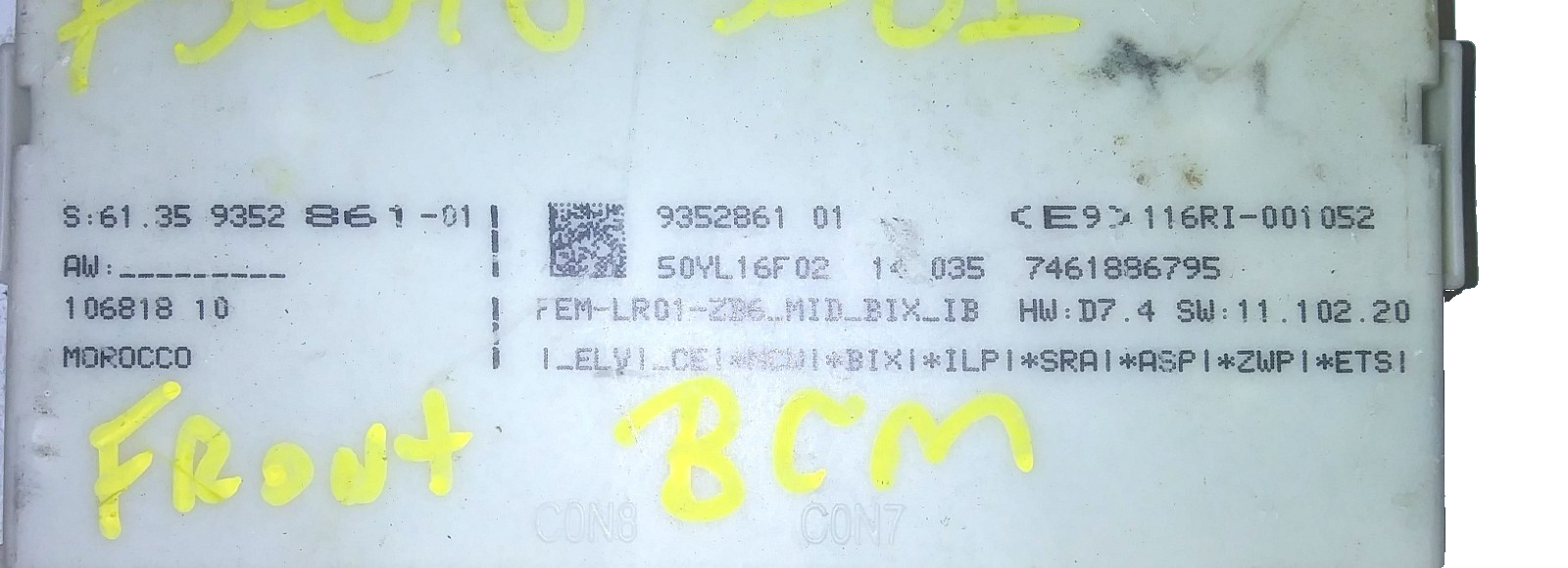 This is a good bcm or body control module for a 2016-2018 BMW 328i. The part # is 61.35 9352 861-01. It comes with a 90-day warranty. Make sure your part number matches before ordering. Computer may need to be reprogrammed to your vehicle.