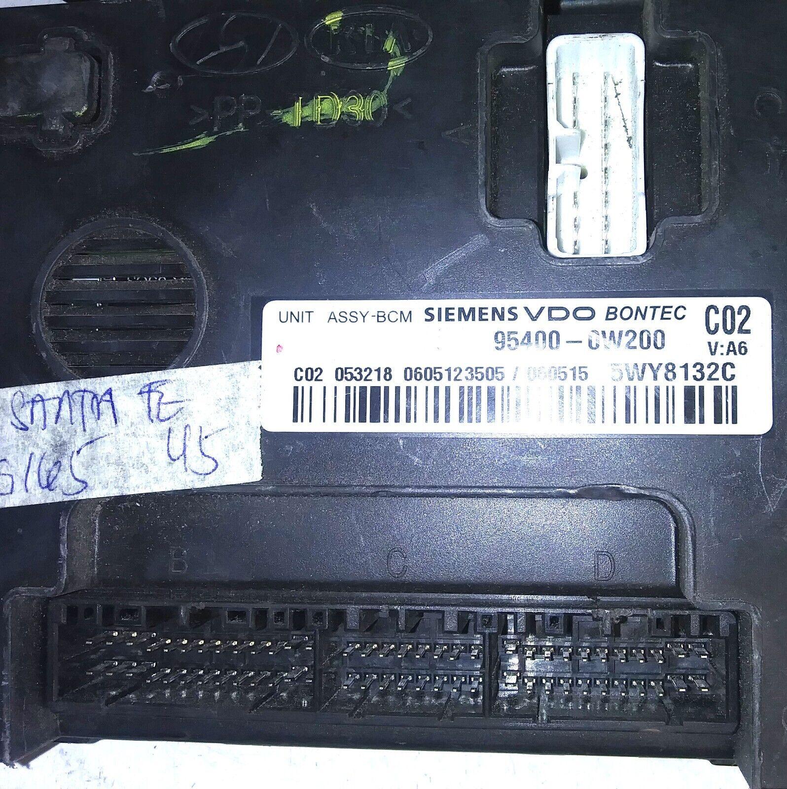This is a good bcm or body control module for a 2007 Hyundai Santa Fe. The part # is 95400-0W200. It comes with a 90-day warranty. Make sure your part number matches before ordering. Computer may need to be reprogrammed to your vehicle. Stock # 4G165