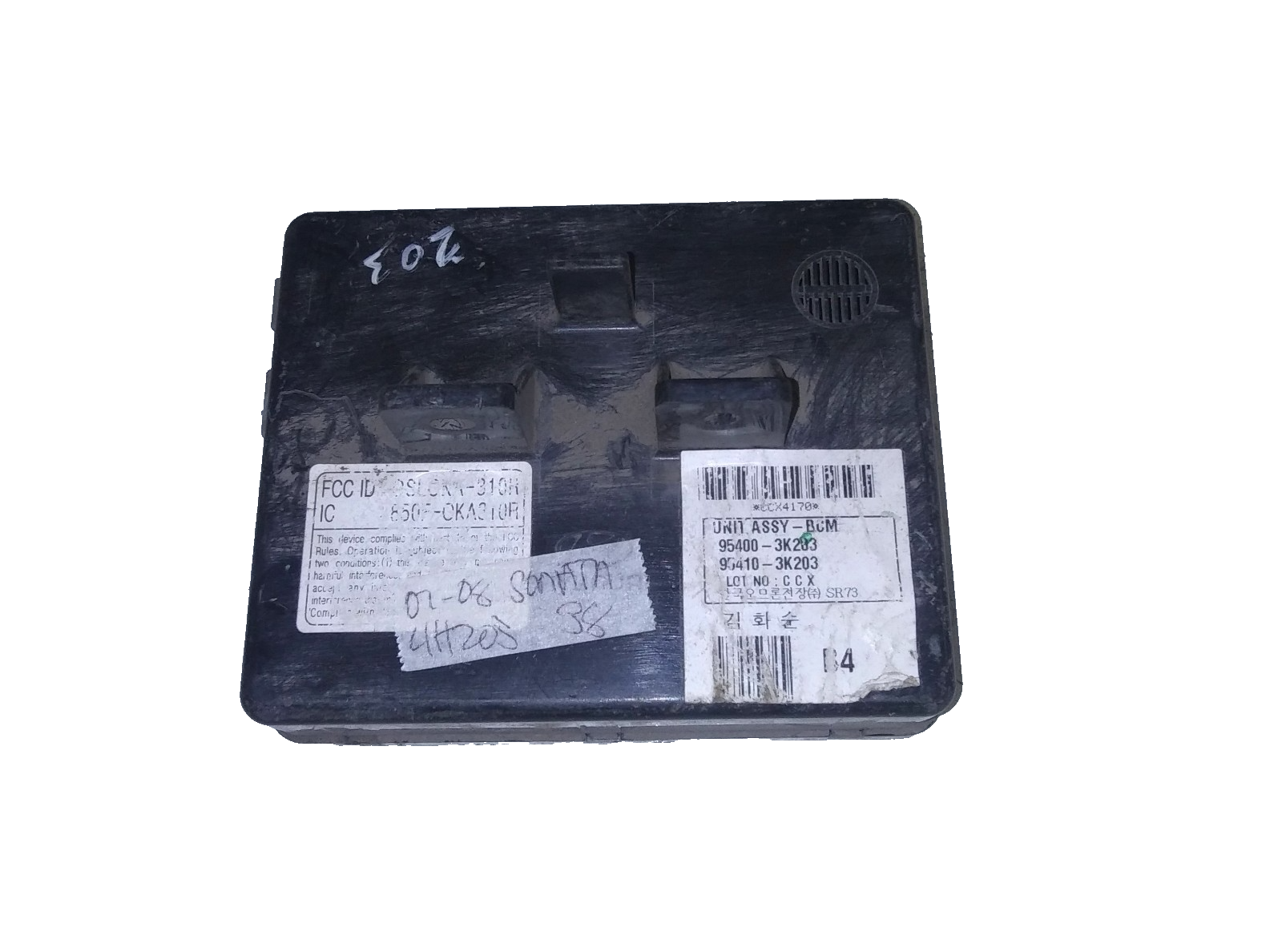 This is a good bcm or body control module for a 2007-2008 Hyundai Sonata. The part # is 95400-3K203. It comes with a 90 day-warranty. Make sure your part number matches before ordering. Computer may need to be reprogrammed to your vehicle.
