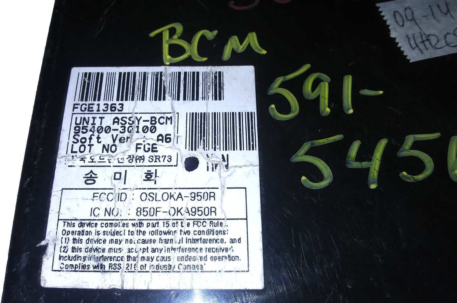 This is a good bcm or body control module for a 2009-2014 Hyundai Sonata. The part # is 95400-3Q100. It comes with a 90-day warranty. Make sure your part number matches before ordering. Computer may need to be reprogrammed to your vehicle.