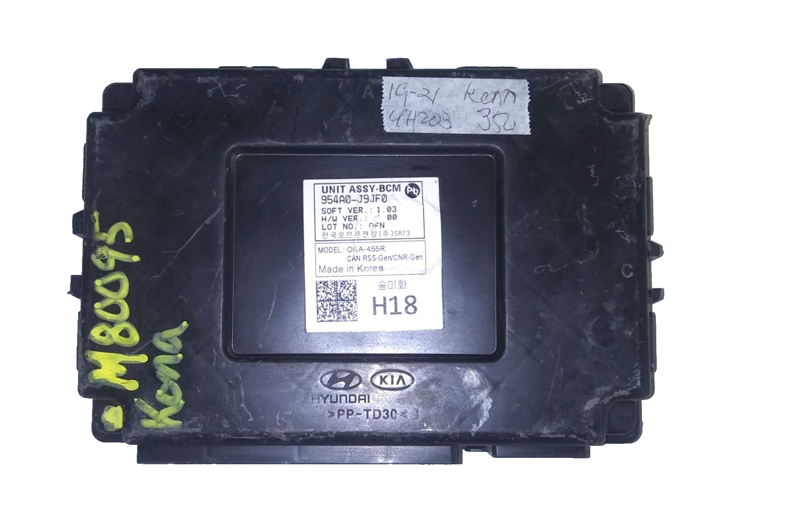 This is a good body control module computer for a 2019-2021 Hyundai Kona . The part # is 954A0-J9JF0. It comes with a 90-day warranty. Make sure your part number matches before ordering. Computer may need to be reprogrammed to your vehicle.                                                Stock # 4H203
