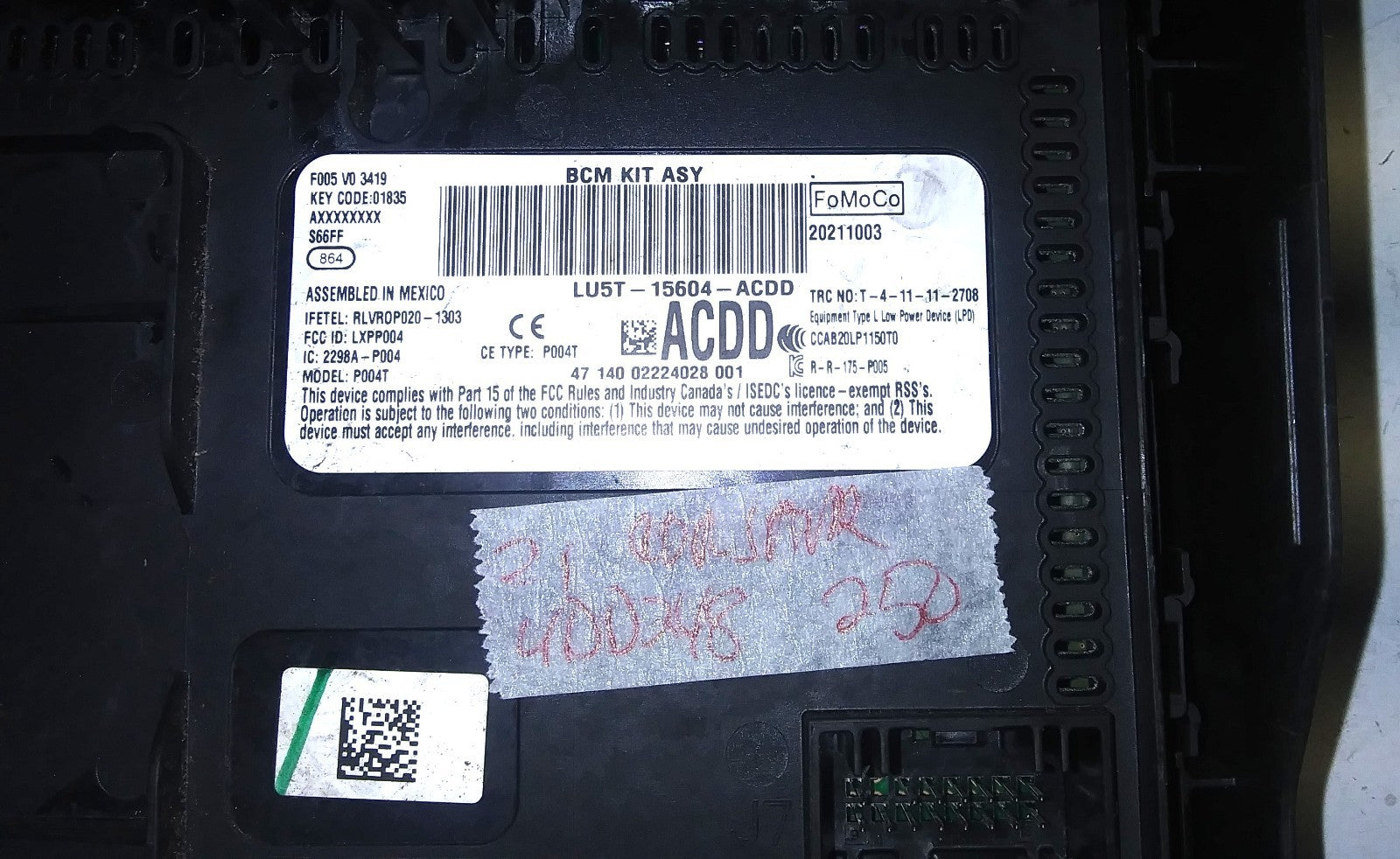 This is a good bcm or body control module for a 2021 Lincoln Corsair. The part # is LU5T-15604-ACDD. It comes with a 90-day warranty. Make sure your part number matches before ordering. Computer may need to be reprogrammed to your vehicle.