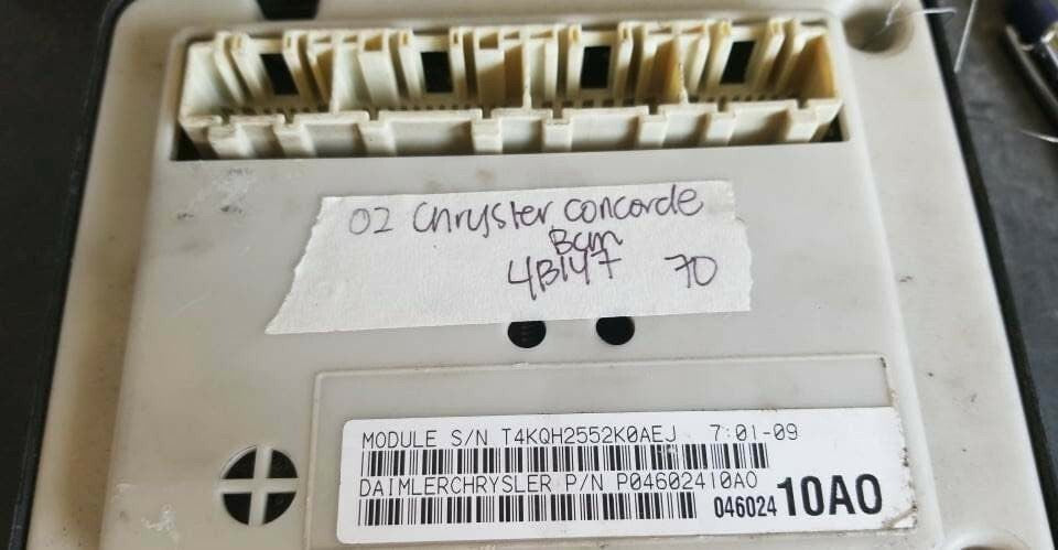This is a good body control module computer for a 2002 Chrysler Concorde or 300. The part # is P04602410A0. It comes with a 90 day warranty. Make sure your part number matches before ordering. Computer may need to be reprogrammed to your vehicle.