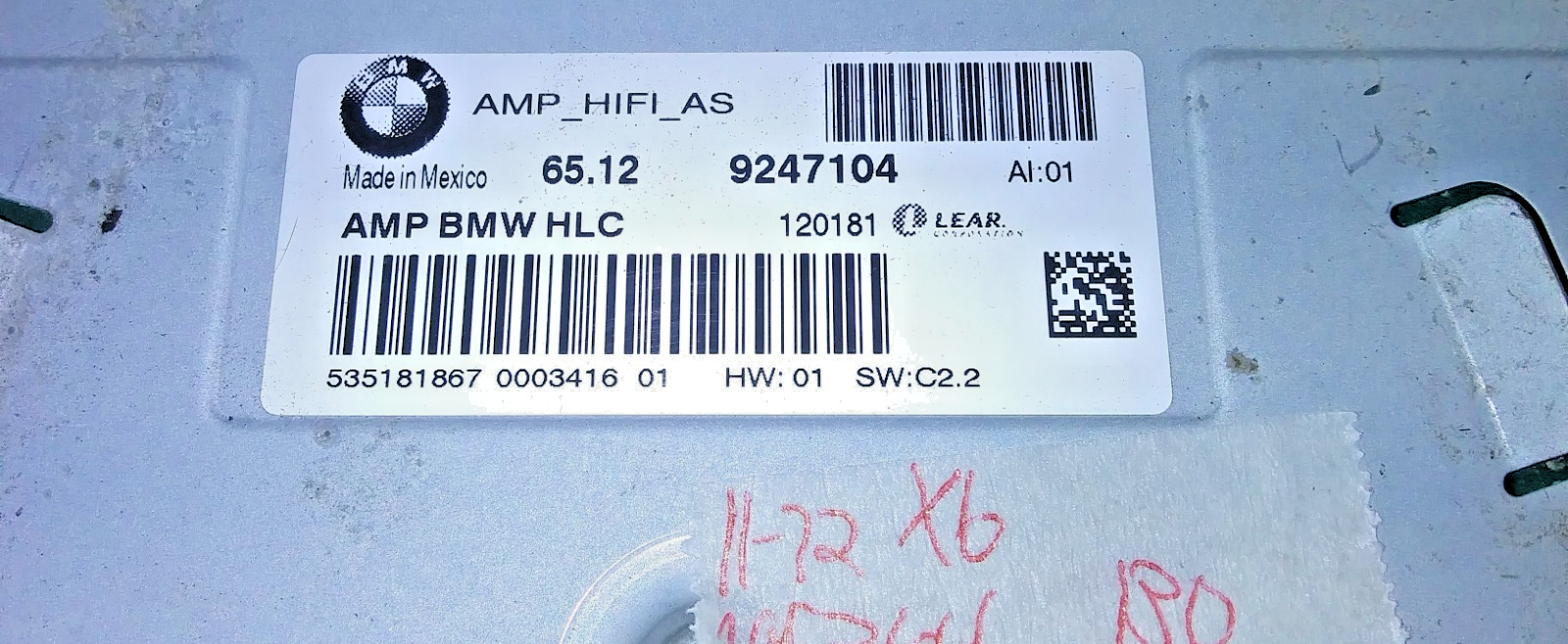 This is a good amplifier for a 2011-2012 BMW X6. The part # is 9247104. It comes with a 90-day warranty. Make sure your part number matches before ordering. May need to be reprogrammed to your vehicle.