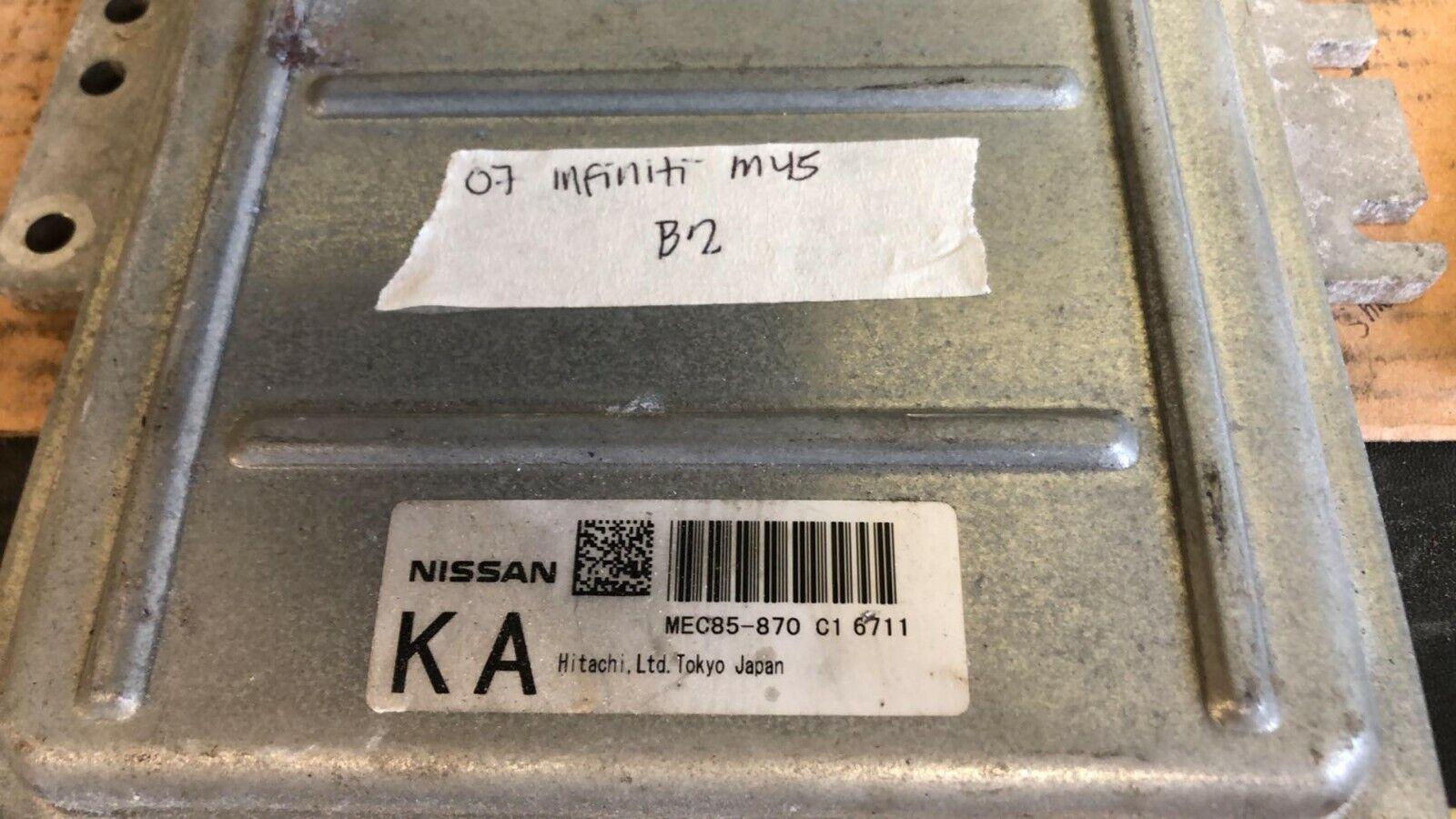 This is a good ecm or engine computer for a 2007 Infiniti M45. The part # is MEC85-870. It comes with a 90 day warranty. Make sure your part number matches before ordering. Computer may need to be reprogrammed to your vehicle.